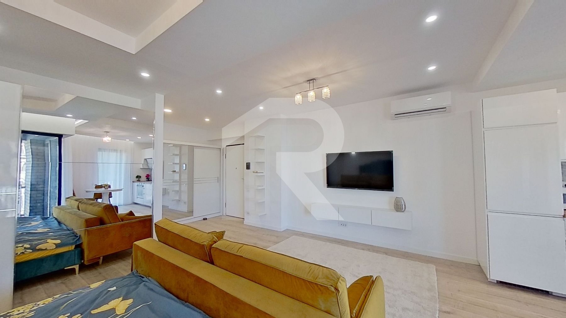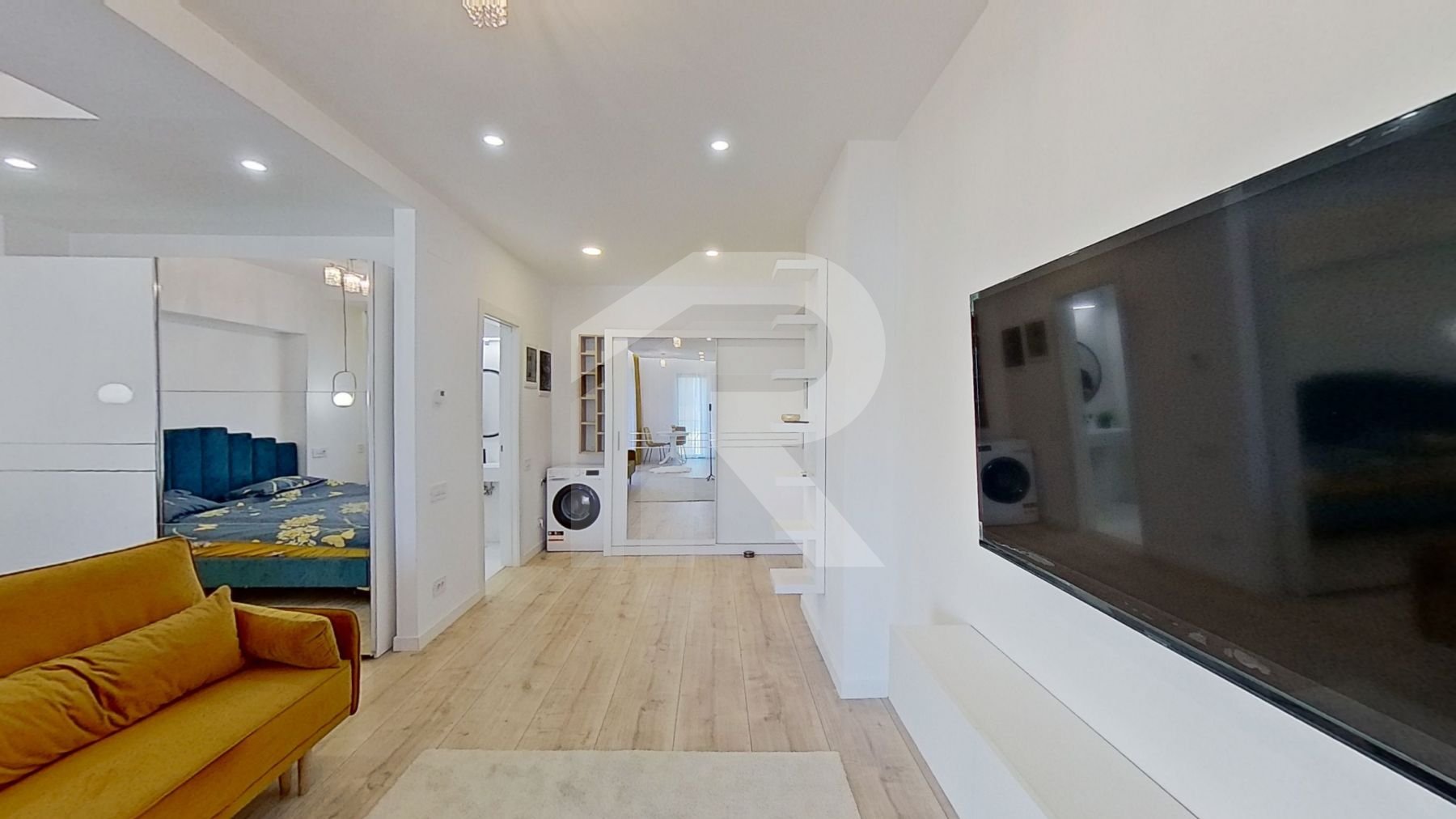 Tehnologie Modernă: Dotată cu un TV Samsung Smart de 139cm și electrocasnice de ultimă generație, inclusiv plită cu inducție și mașină de spălat vase și rufe.