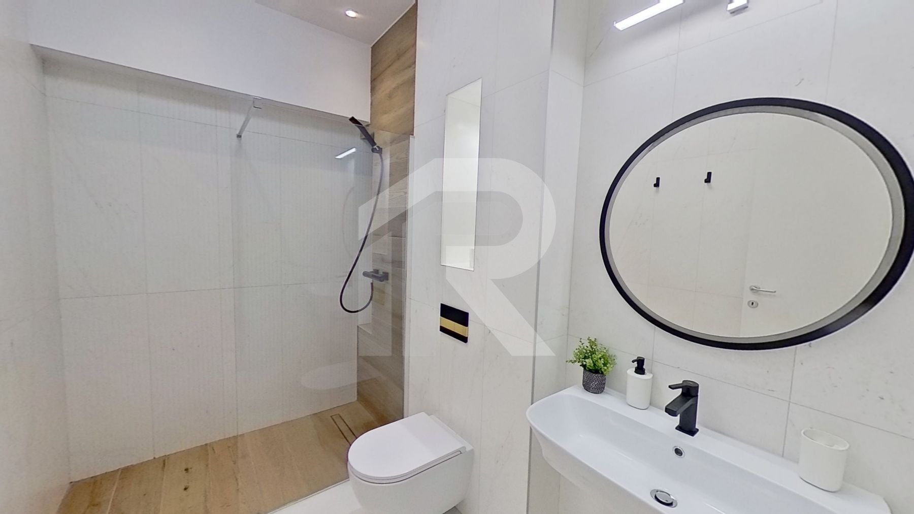 Finisaje Refined: Trăiți înconjurat de lux cu geamuri de înaltă calitate pentru izolare fonică și termică și finisaje elegante Porcelanosa în baie.