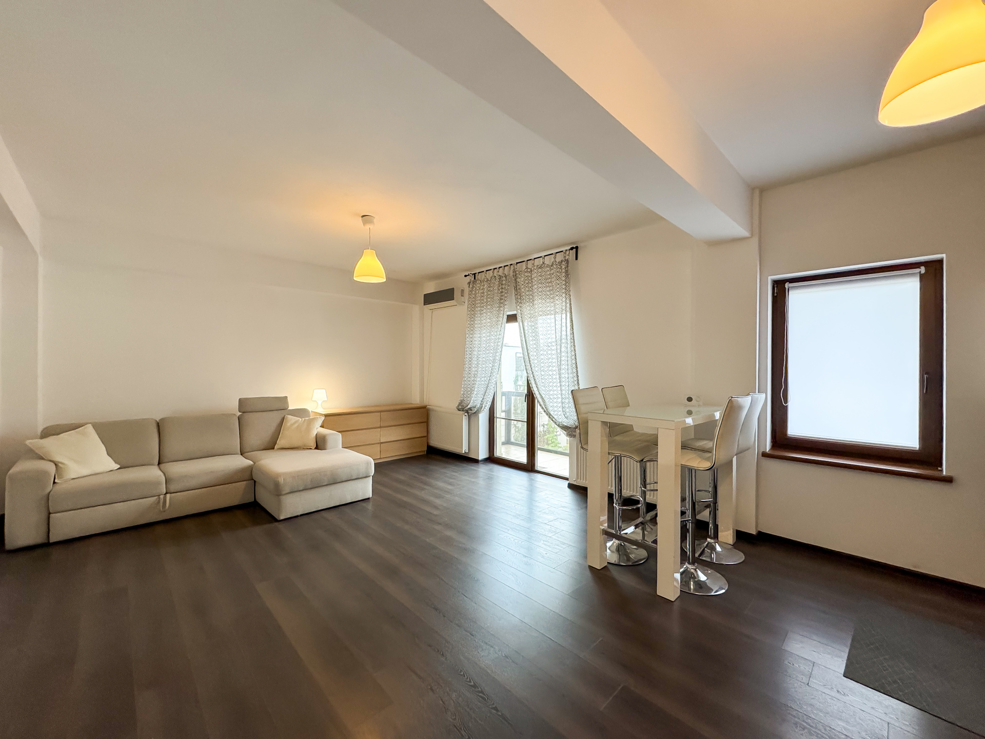 Garsoniera este compartimentata practic, cu bucatarie deschisa, zona de zi generoasa, baie cu fereastra si finisaje moderne. Vine la pachet cu un loc de parcare inclus, un detaliu important pentru confortul de zi cu zi.