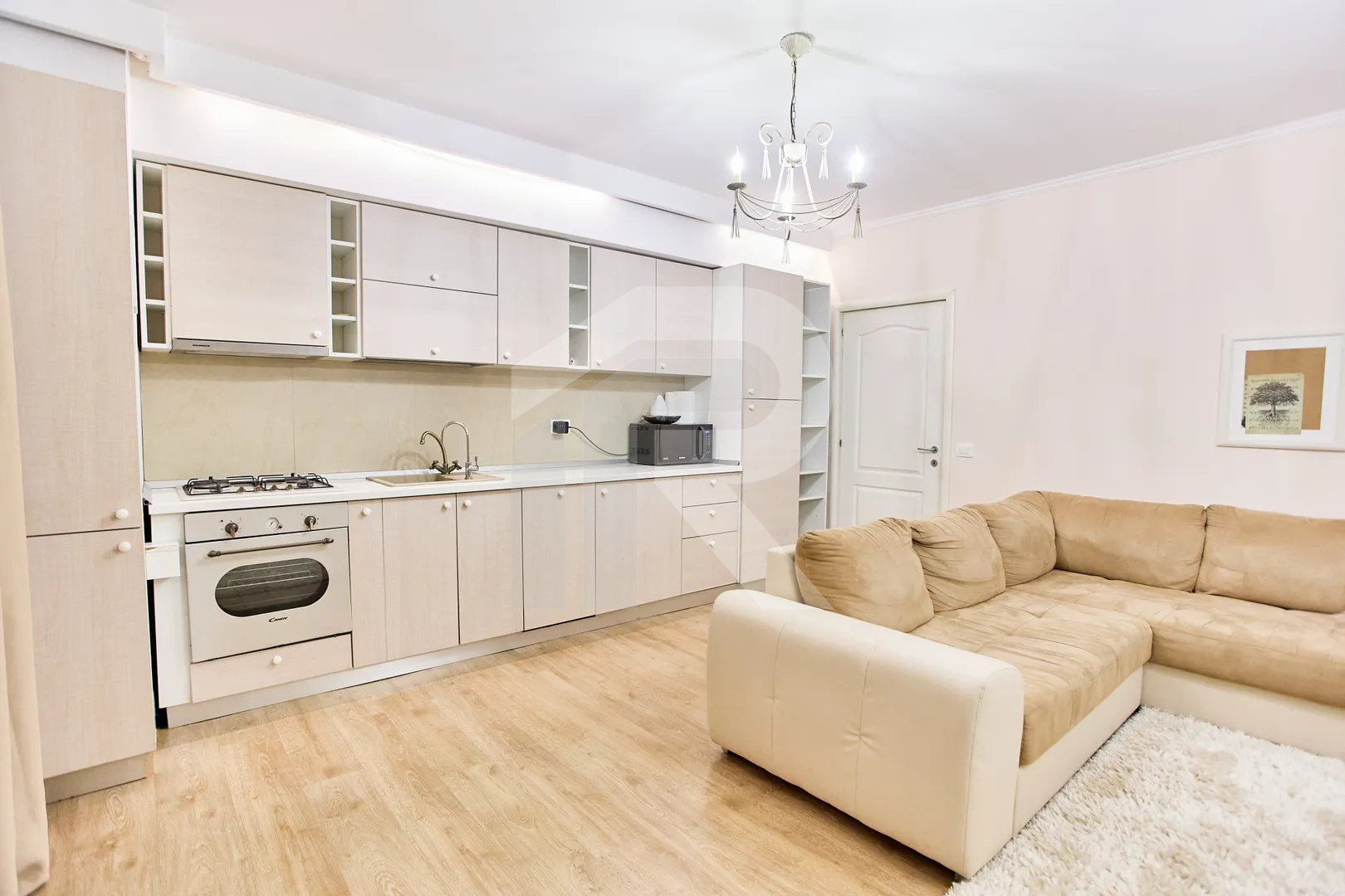 Living open-space cu bucătărie echipată, dormitor spațios, centrală proprie, 2 aparate A/C, baie cu geam, balcon multifunctional.