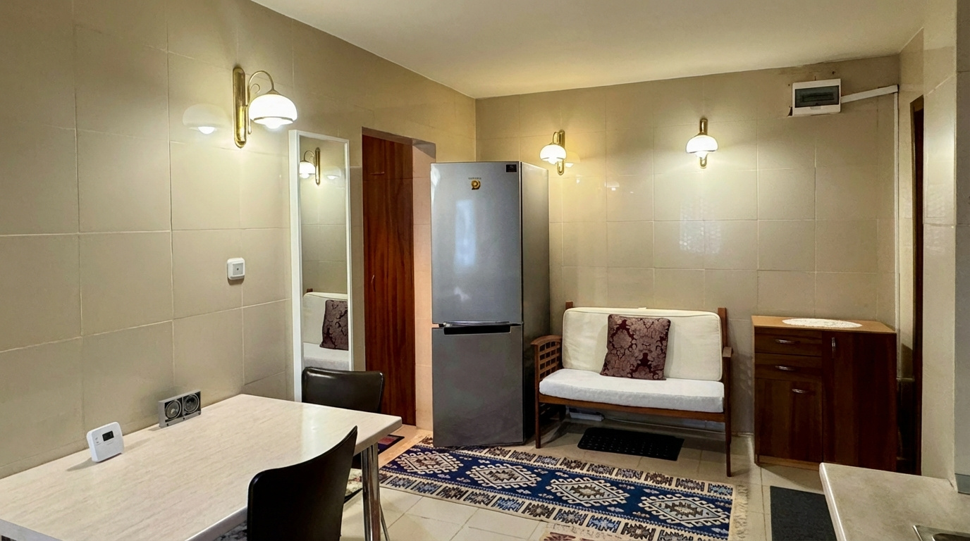 Locuința dispune de centrală termică proprie, aer condiționat și este dotată cu mașină de spălat, oferind confort pe tot parcursul anului. Vederea apartamentului este orientată către curtea din spate, asigurând liniște și intimitate. Spațiul este bine proporționat și funcțional, potrivit pentru o persoană sau un cuplu.