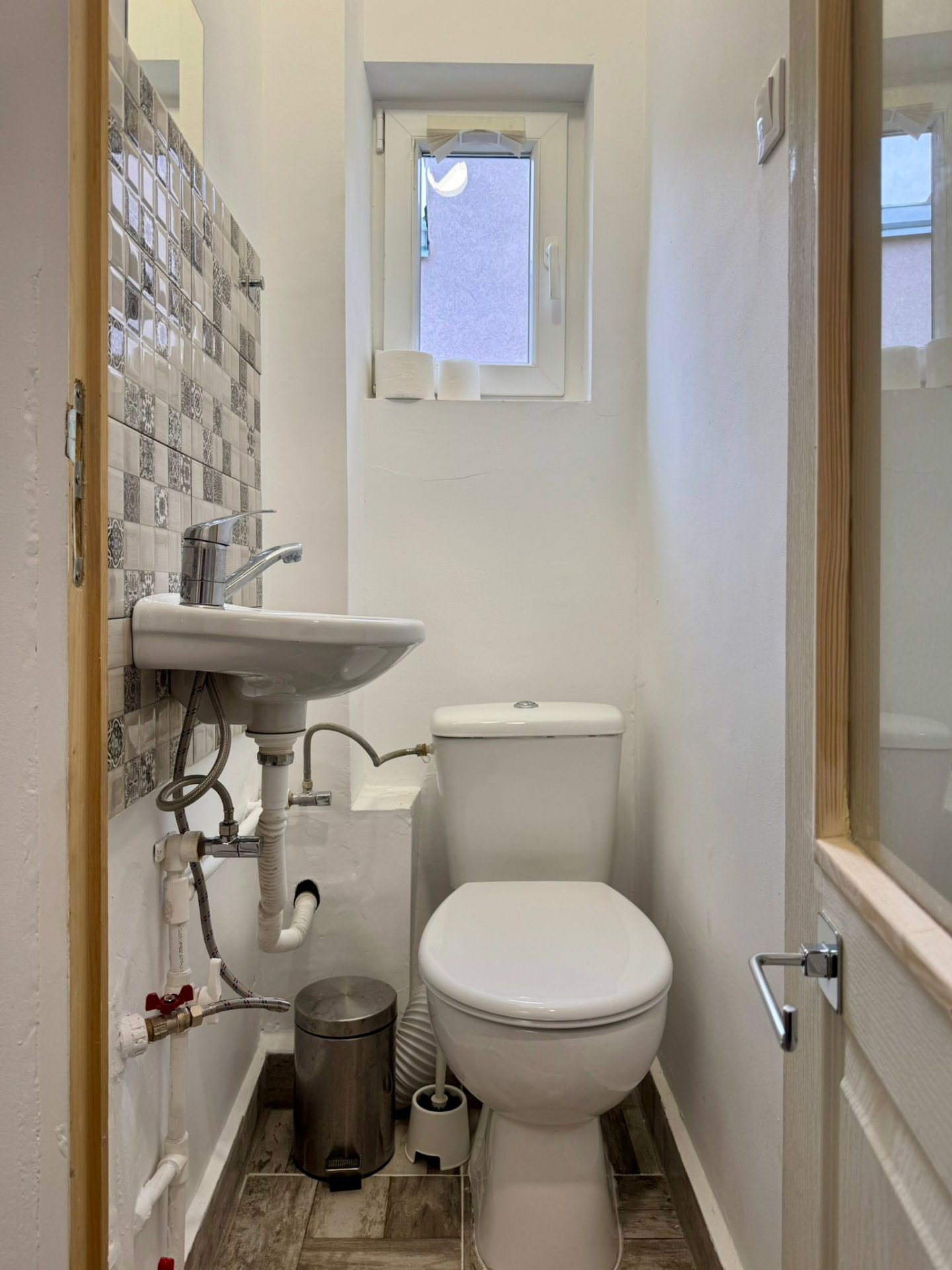 Apartament de 2 camere, situat la etajul 3/3, prima închiriere. Locuință decomandată, cu centrală proprie, luminator în tavan (skylight) și acces printr-o scară de serviciu separată, folosită exclusiv. Persoanele de la parter și etajul 1 au intrări complet independente, fără acces pe scara dvs., ceea ce oferă intimitate și liniște.