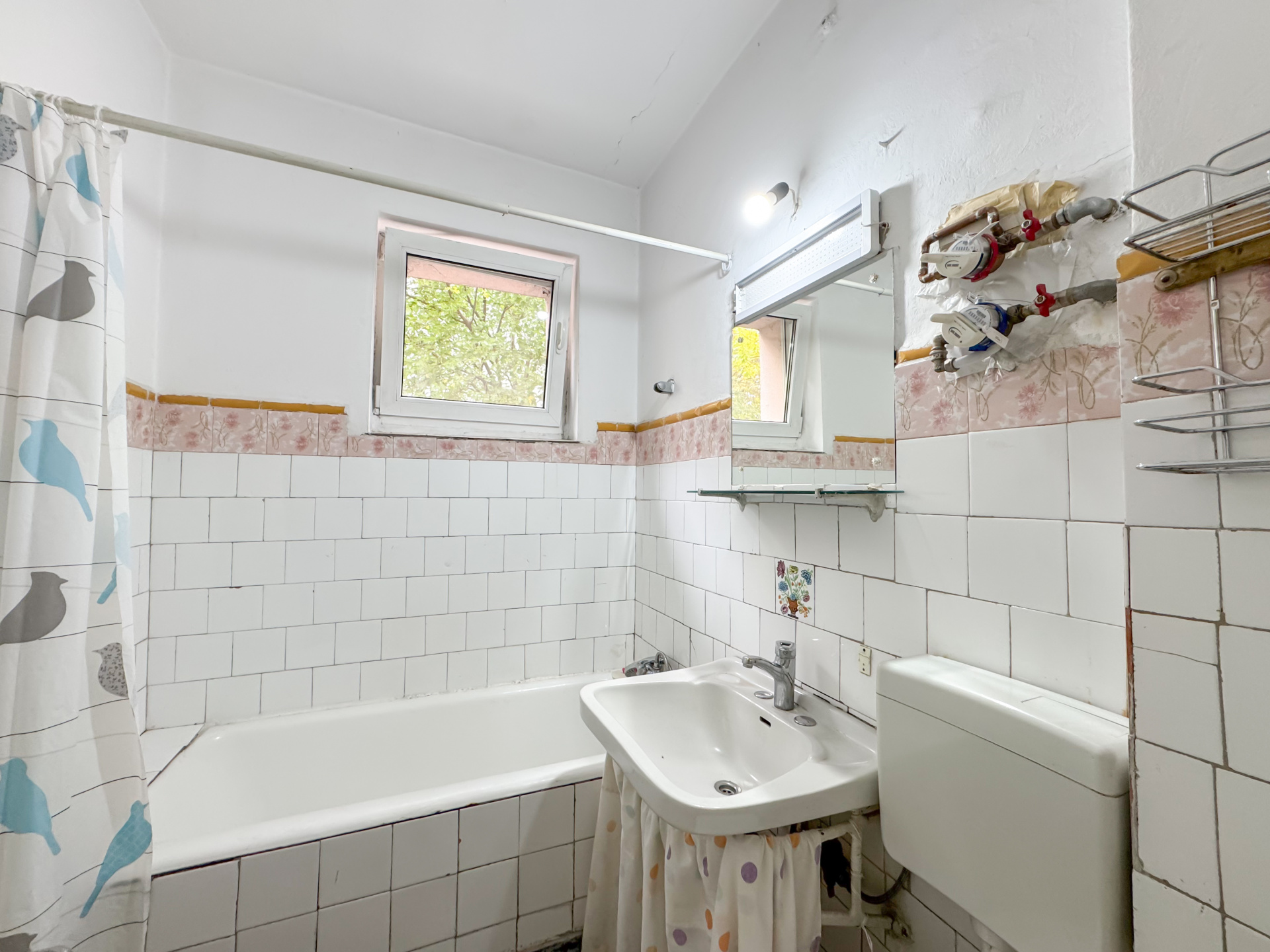 Permiteti-mi sa va prezint apartamentul: 2 camere, decomandat, putin peste 47 mp utili si un balcon de aproape 8 mp. Dupa cum vedeti, avem debaralele pe pozitii, iar apartamentul nu are modificari fata de cadastru. Nu are niciun fel de alte modificari – ce-i drept, e vintage. Va rog sa observati geamurile mari si camerele inalte. Pana si geamul de la baie este imens! Daca toate debaralele existente vi se par totusi prea putine, in proprietate exista si o boxa care se vinde impreuna cu apartamentul.