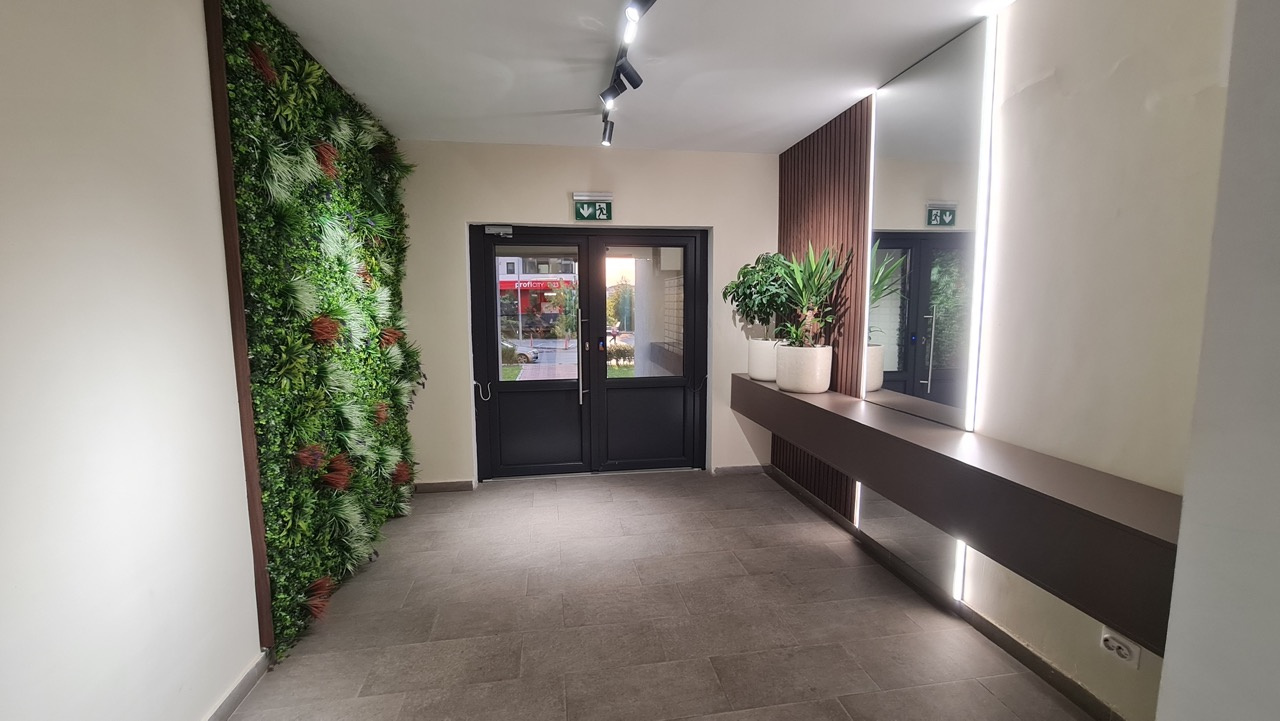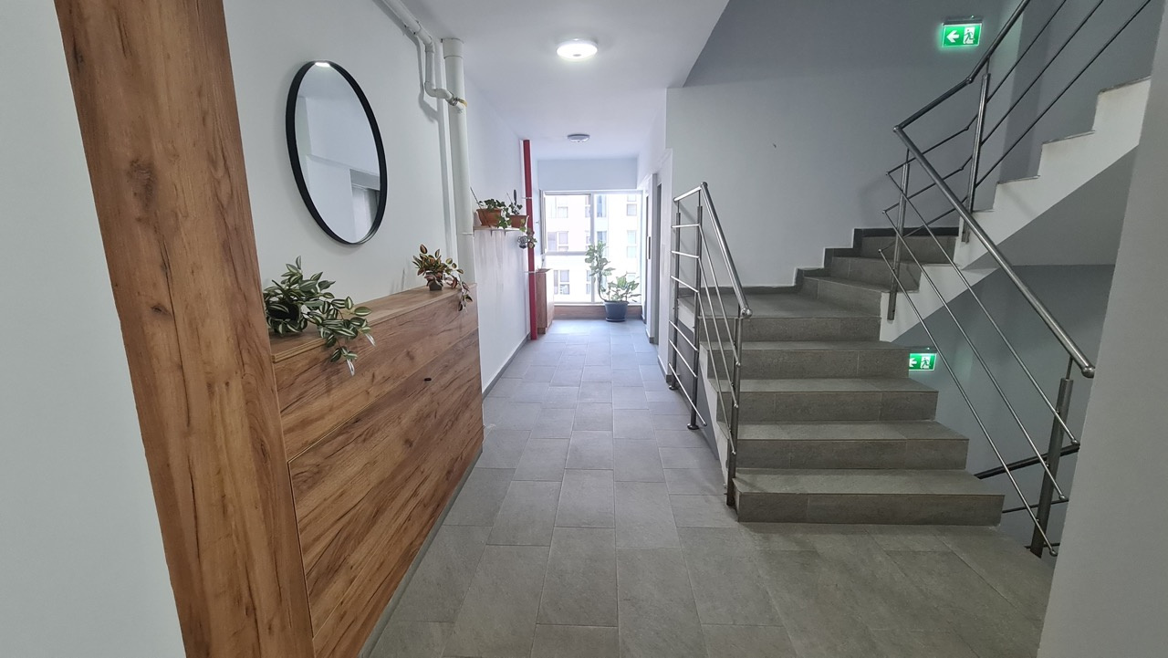 Imprejurimile blocului sunt foarte placute, avem gazon ingrijit la intrarea in bloc, PROFI vizavi de acesta, scara blocului arata si ea foarte bine, dispune de 2 lifturi si lumina naturala, precum si palierul de pe etaj.