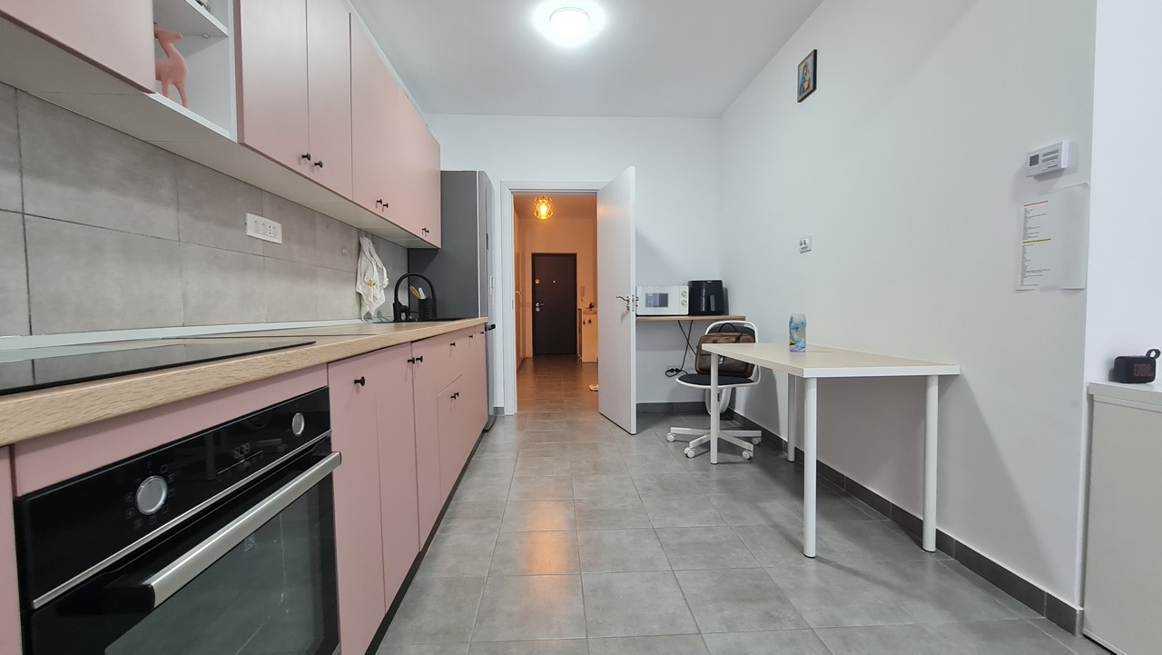 Bucataria este extrem de spatioasa (17 metri patrati), vine complet mobilata si utilata cu cuptor si plita BEKO, frigider Gorenje, masina de spalat vase, mobila de calitate facuta la comanda. Din bucatarie avem acces spre o terasa deschisa de 6 metri patrati. Avem bineinteles si masina de spalat rufe in incinta.