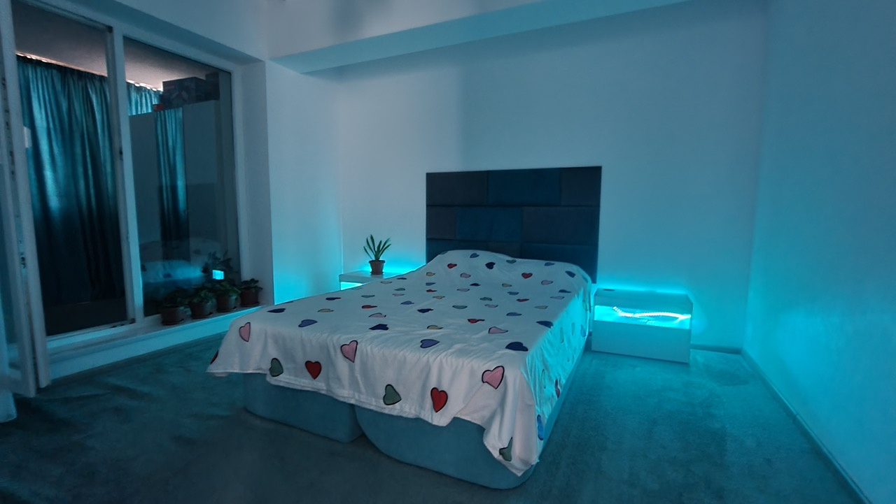 Apartamentul decomandat este situat la etajul 9/11 al blocului edificat in 2022 si dispune de o suprafata totala de 89mp.Compartimentarea este una eficienta, balconul a fost practic transformat intr-o camera de zi cu canapea si TV cu riflaj. Acesta a fost inchis cu geamuri termopan Salamander cu protectie UV si practic transformat in suprafata utila si un total de 3 camere. Doar aici investitia depaseste 8000 euro. Spatiul acesta poate fi folosit ca un living room, birou pentru lucru, sau spatiu de relaxare.