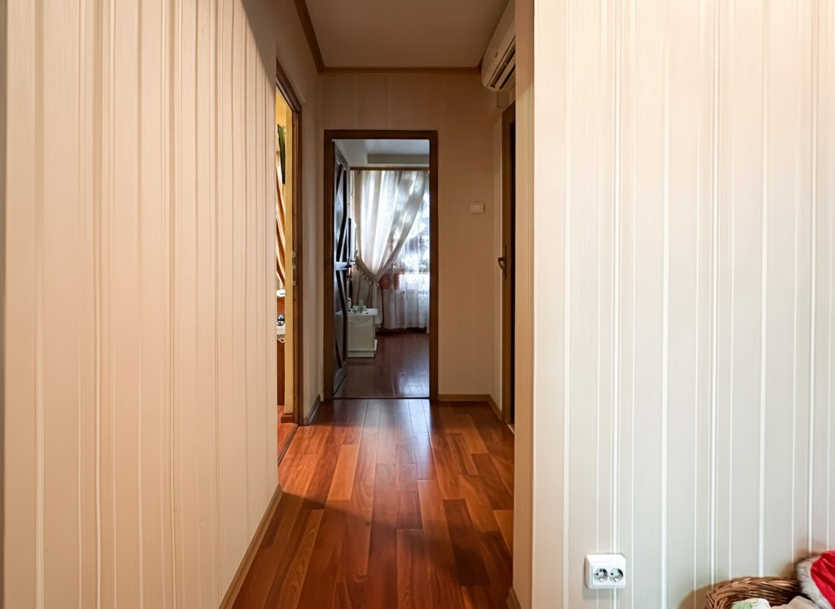Apartamentul are 60 de metri pătrați utili, decomandat: două dormitoare suficient de generoase pentru paturi duble și dulapuri, un living în care încape masa de familie, o bucătărie spațioasă unde poți să gătești confortabil, nu să te învârți între frigider și aragaz. Spațiile sunt reale, nu optimizate la milimetru ca în blocurile noi unde doar pe hârtie încap lucrurile.
