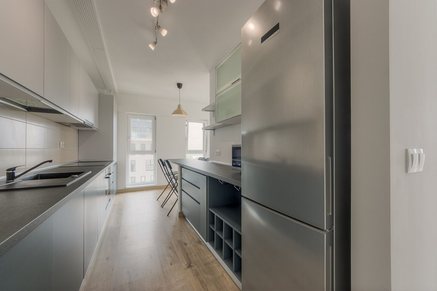 Apartamentul este amenajat complet, proaspat igienizat, se vinde mobilat si utilat complet ca in fotografii cu mobilier pe comanda Mobexpert si electrocasnice de calitate.