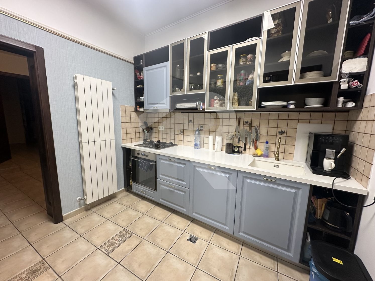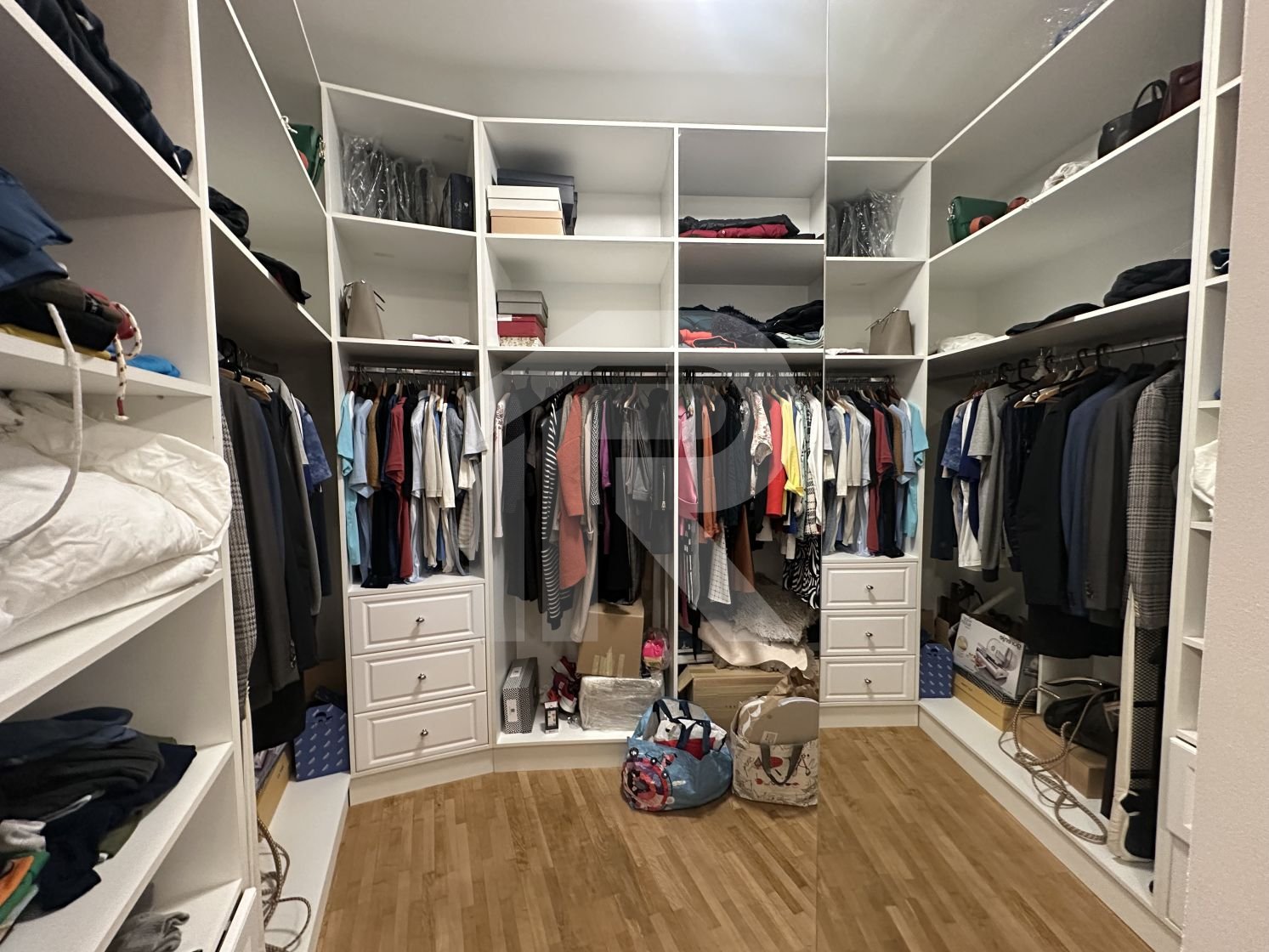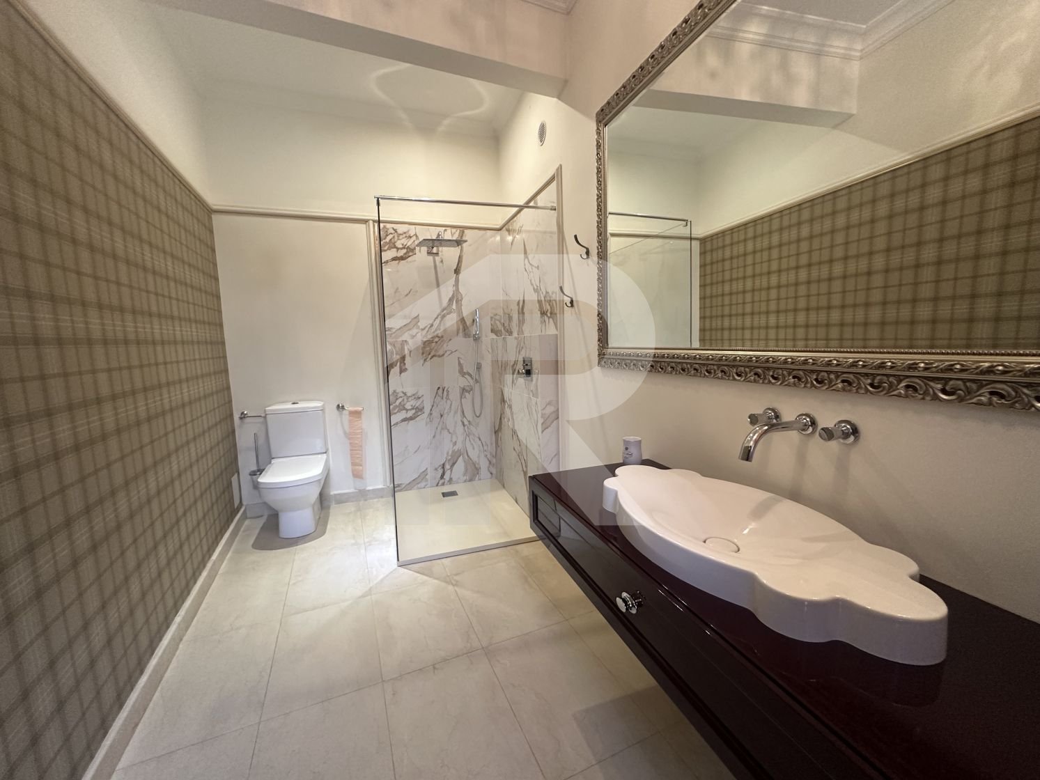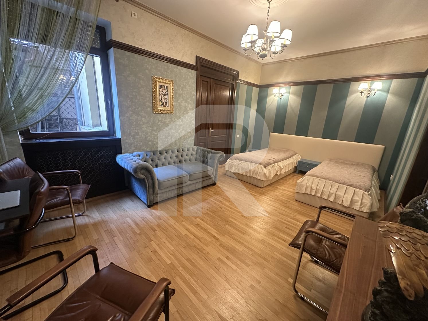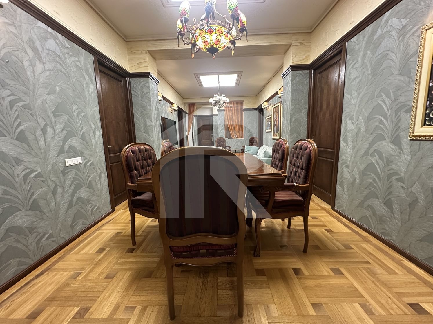 Apartamentul cu suprafata de 190 mp, tavanului inalt de 3 m, are 6 camere, 2 camere tip dressing, bucataria cu camara si centrala termica, 3 bai cu fereastra, iar balconul transformat intr-o camera-seif.