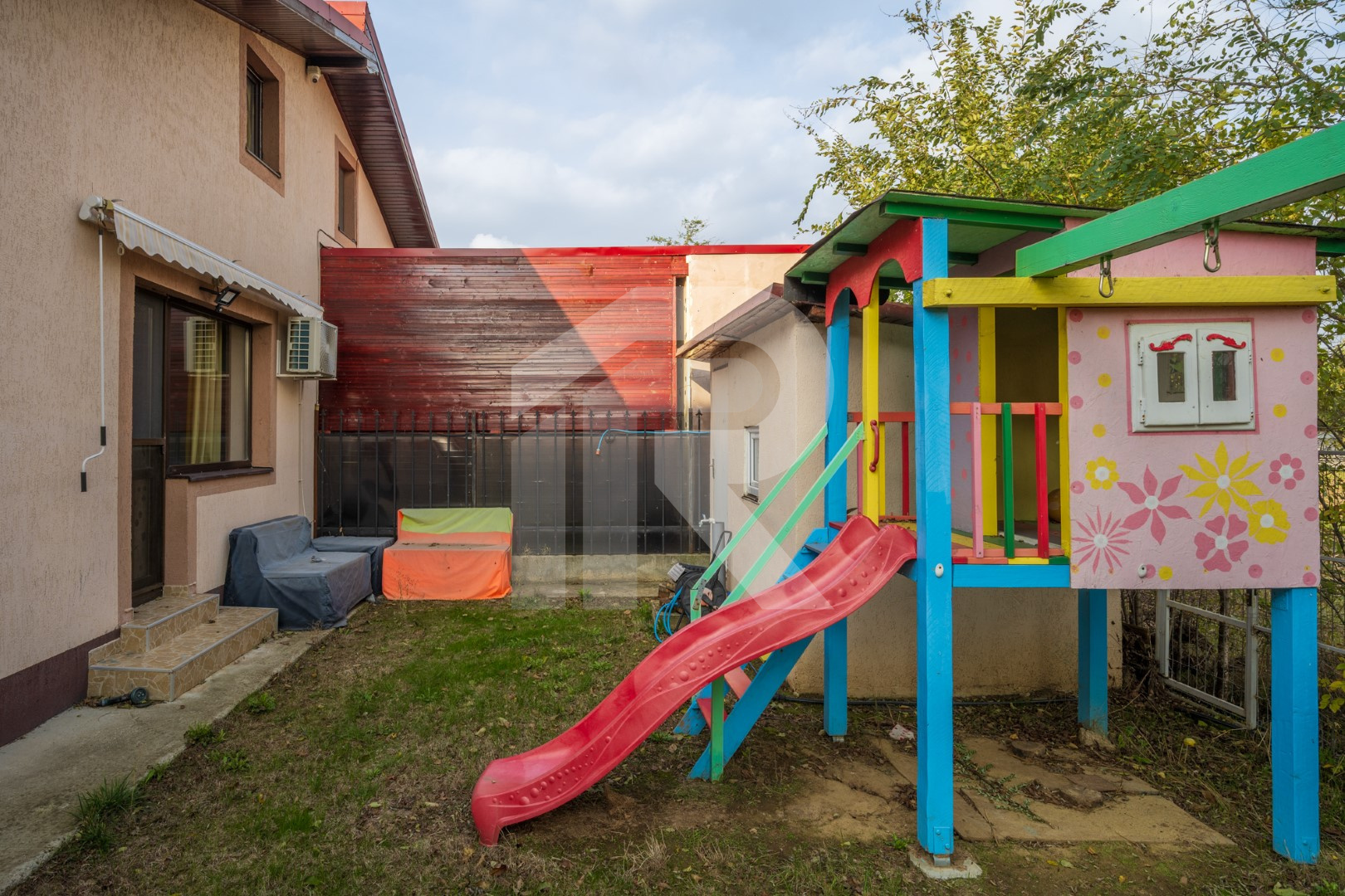 Lot perfect dimensionat, curte amenajata cu casuta de gradina si loc joaca.