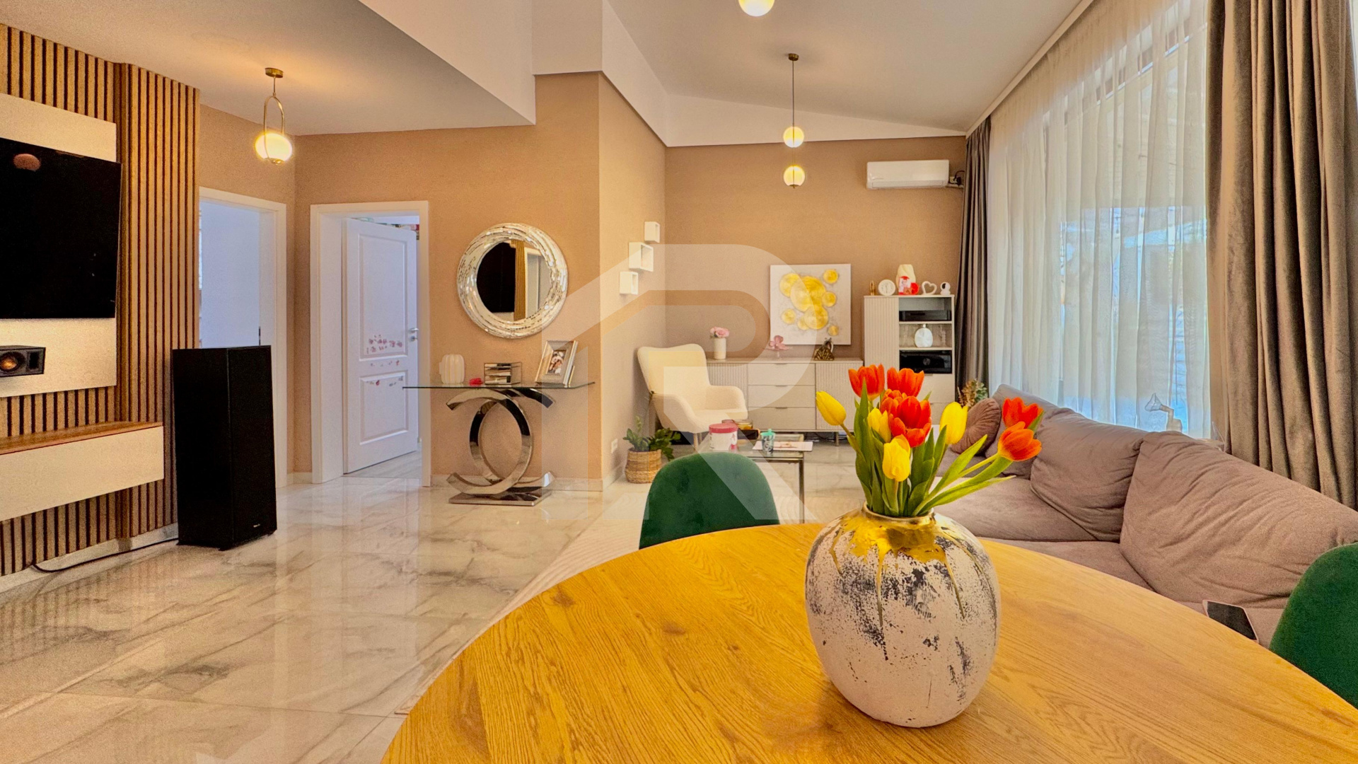 Dispune de 4 camere la care se adauga o terasa inchisa in sticla. Incalzirea se realizeaza prin pardoseala cu ajutorul unei centrale termice prin condensare.