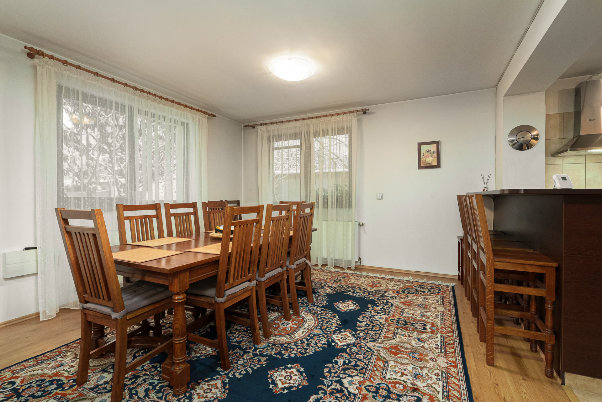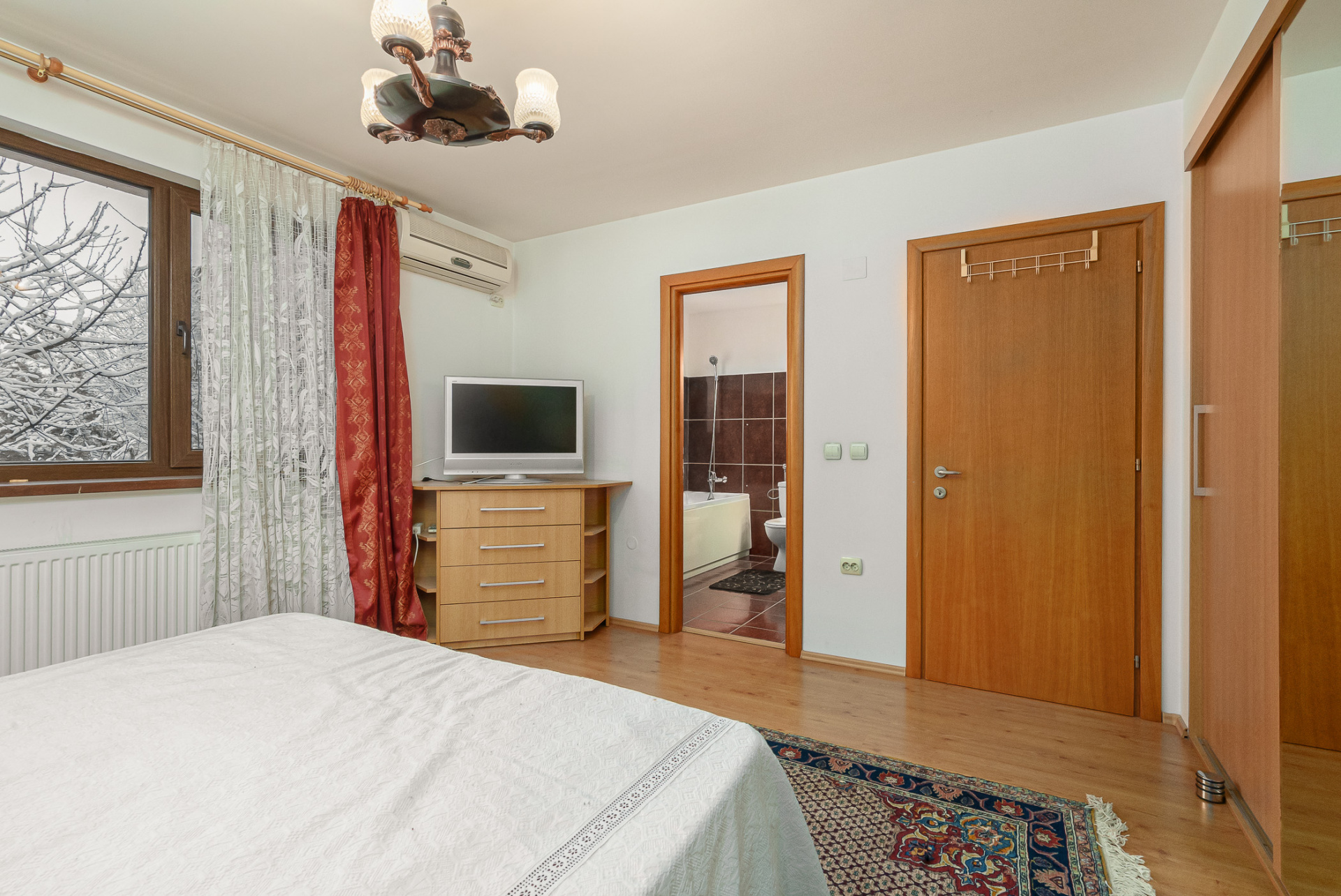 Casa se inchiriaza mobilata si utilata complet, dotata cu centrala termica proprie cu boiler inclus, cu aparate de aer conditionat, masina de spalat, aparatura electronica si electrocasnica. Un dormitor, situat la etajul unu, este gol, nemobilat. Exista deschidere din partea proprietarilor in ce priveste aducerea altor obiecte de mobilier in locuinta, fie ca sunt ale chiriasilor, fie ca sunt solicitate proprietarilor, precum si pentru dotarea cu alte aparate electrocasnice. Totul depinde de chirias si perioada contractuala, iar fiecare situatie se discuta in parte.
