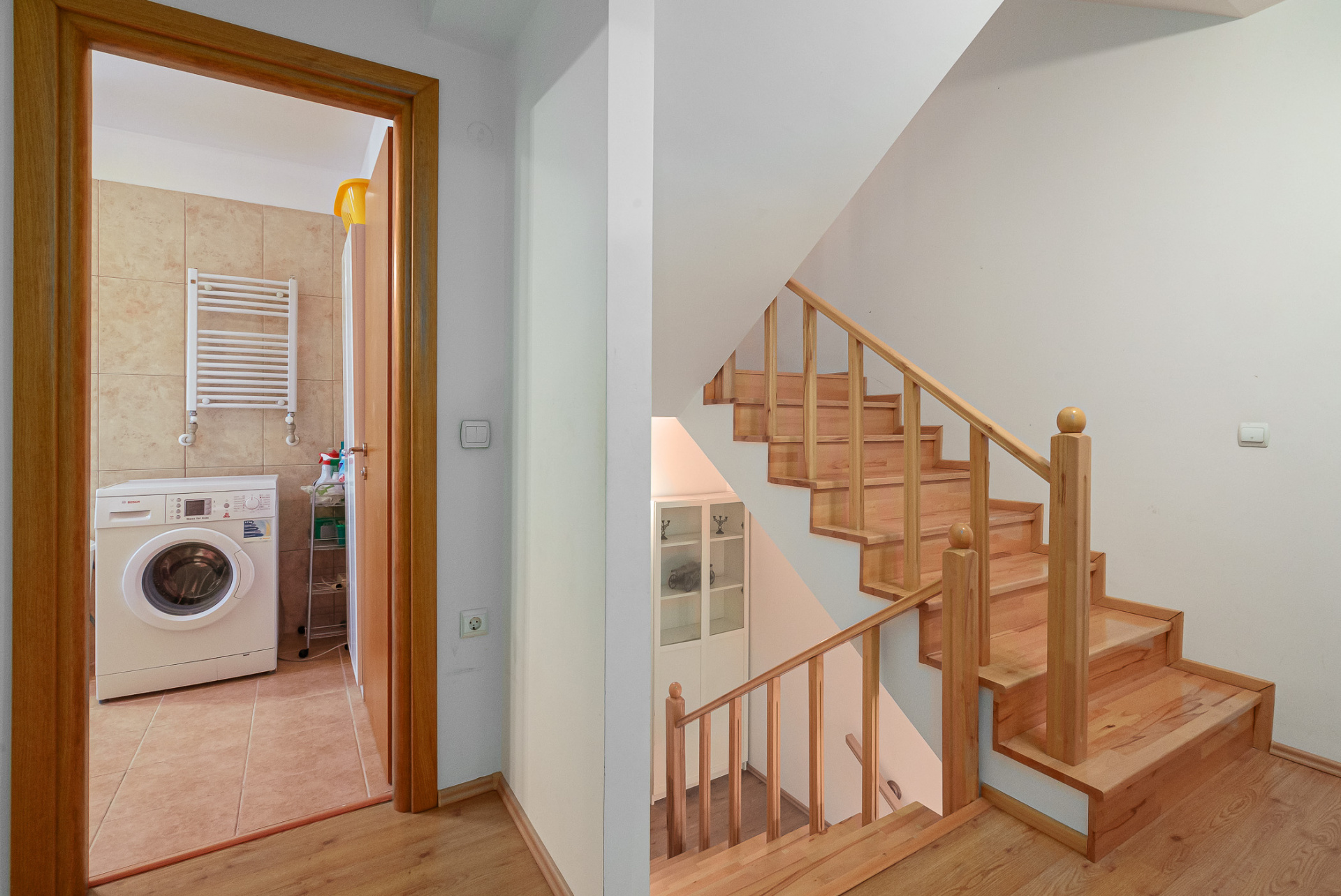 Locuinta pe care o aducem in atentia dumneavoastra este un duplex, format din parter, doua etaje si o mansarda folosita exclusiv ca spatiu de depozitare(nelocuibila). Casa are urmatoarea dispunere: