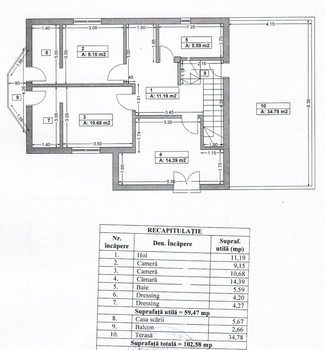 Casa are regim de înălțime P+1+Pod, o suprafață construită de aproximativ 222 mp și o suprafață utilă de 153 mp, fiind realizată pe structură solidă din beton și zidărie din cărămidă. Imobilul este complet finisat și racordat la toate utilitățile: apă, canalizare, gaz, energie electrică și internet.