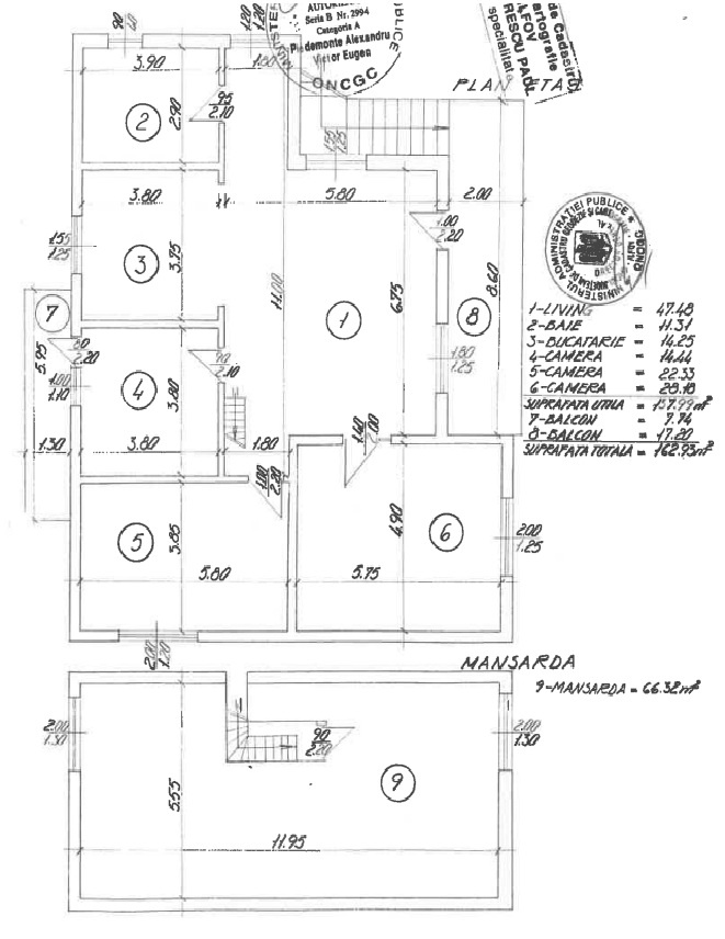 Structura este din cadre de beton si BCA, iar Mansarda din caramida de beton, are izolatie termica la exterior si interior.
