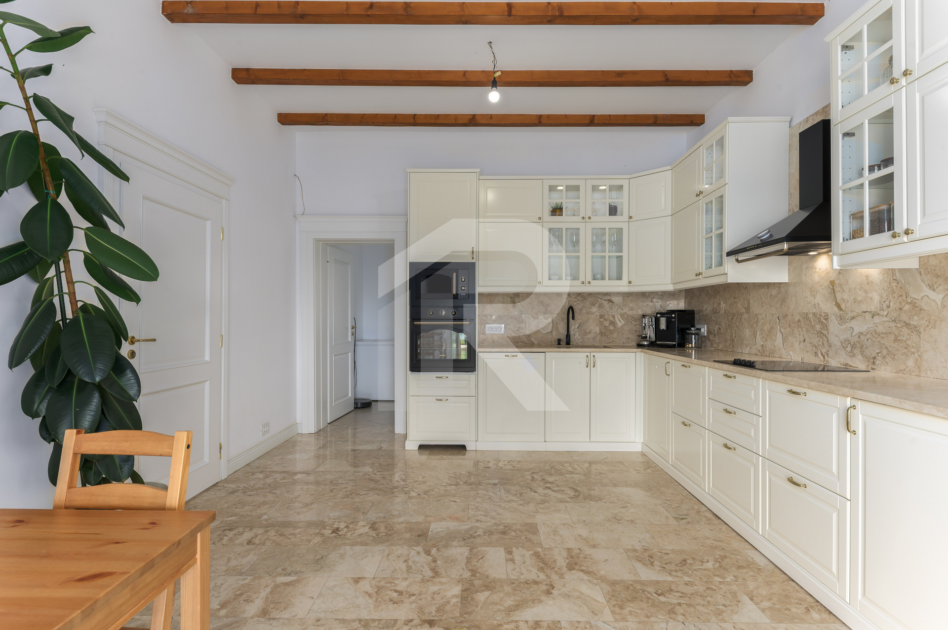 Bucătărie închisă, generoasă, perfect delimitată de zona de zi.