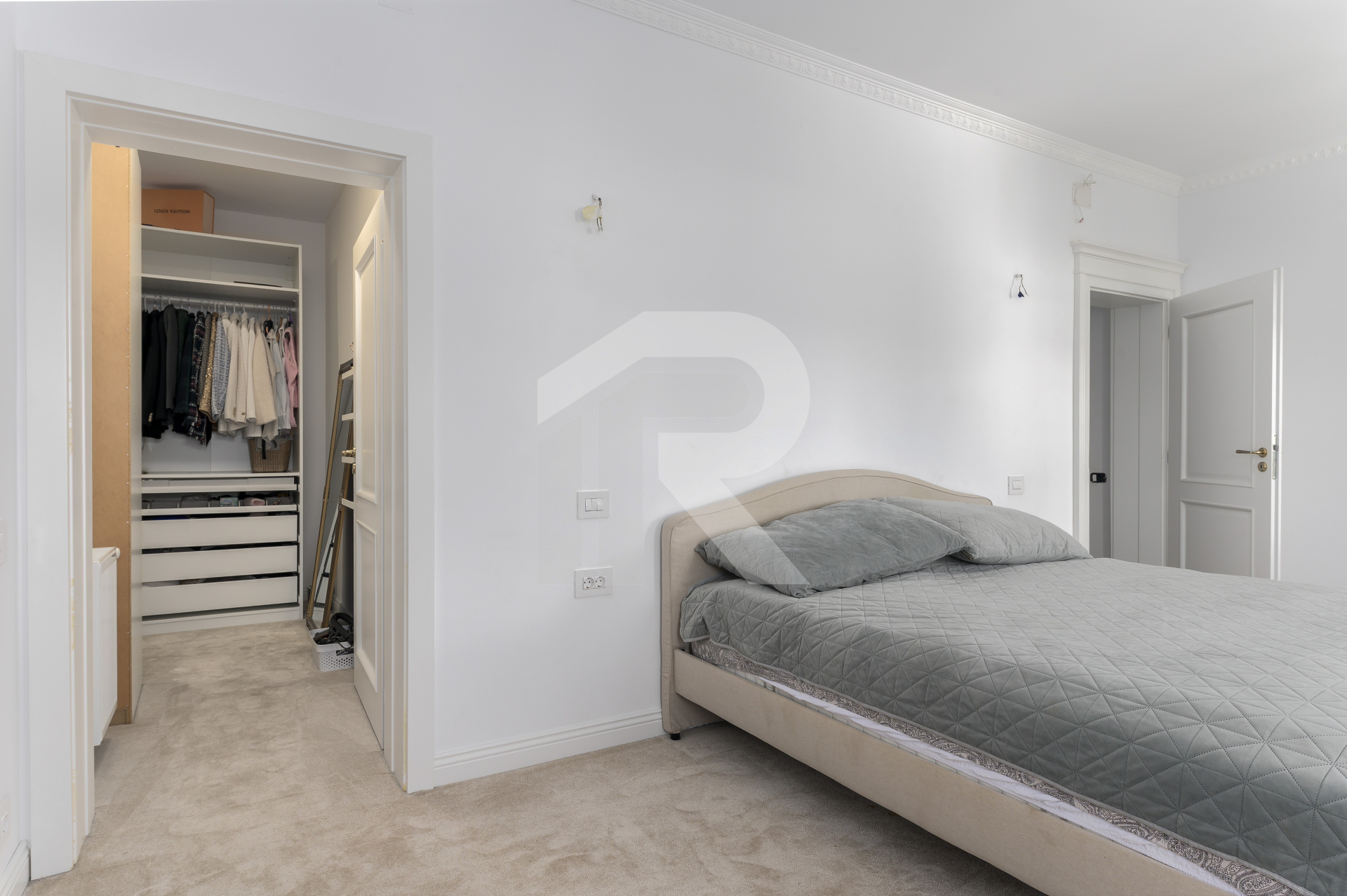 Dormitor matrimonial cu dressing dedicat și baie proprie cu duș – spațiu personal de vis.