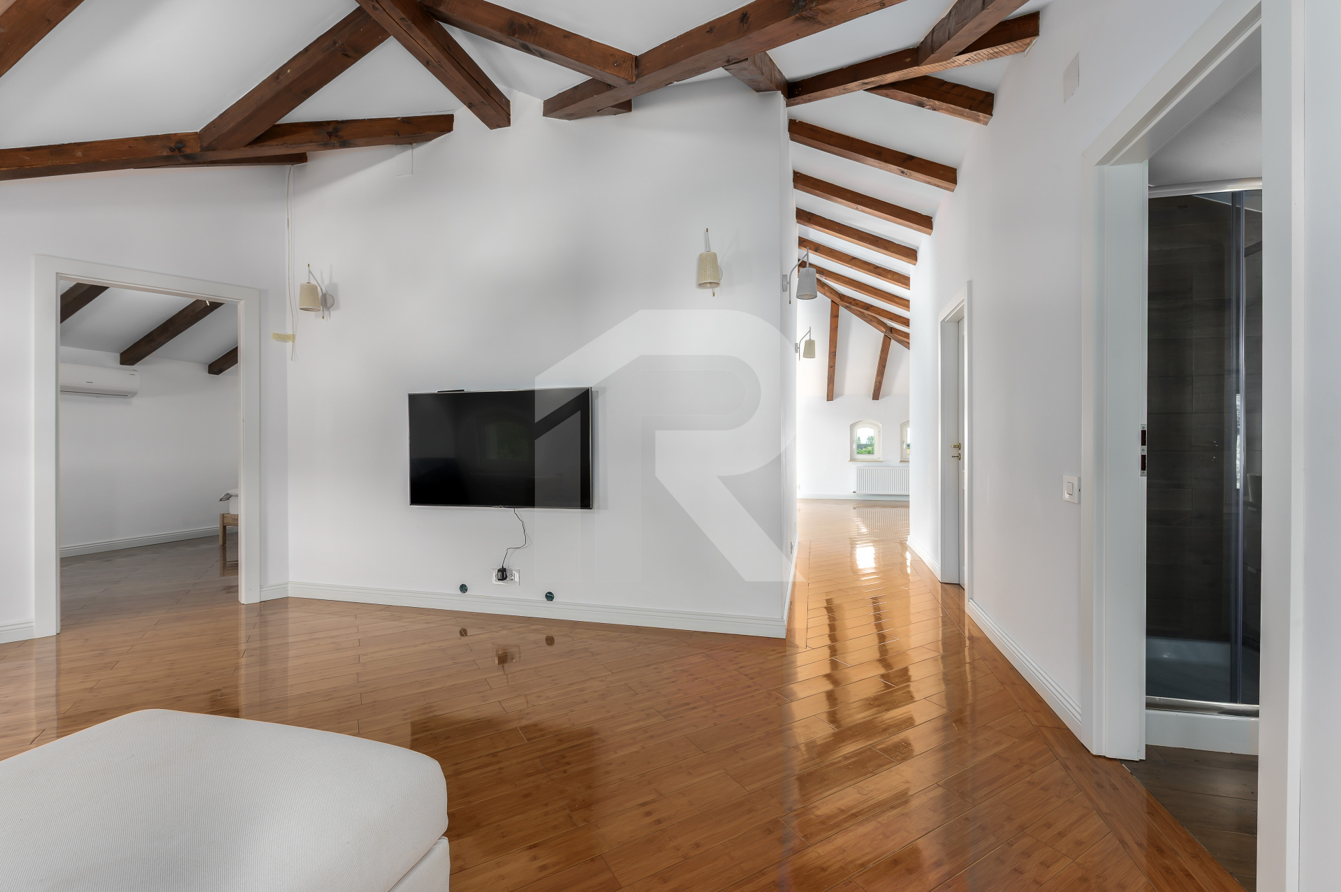 Situată în județul Ilfov, în satul Căciulați, comuna Moara Vlăsiei (Balotești), această proprietate este un veritabil sanctuar rezidențial: construită în 2009 și renovată complet în 2023, pe un teren generos de 2 267 mp, cu amprentă a casei de 170 mp și o suprafață totală de 358 mp, creează un echilibru ideal între spațiu, confort și eleganță.