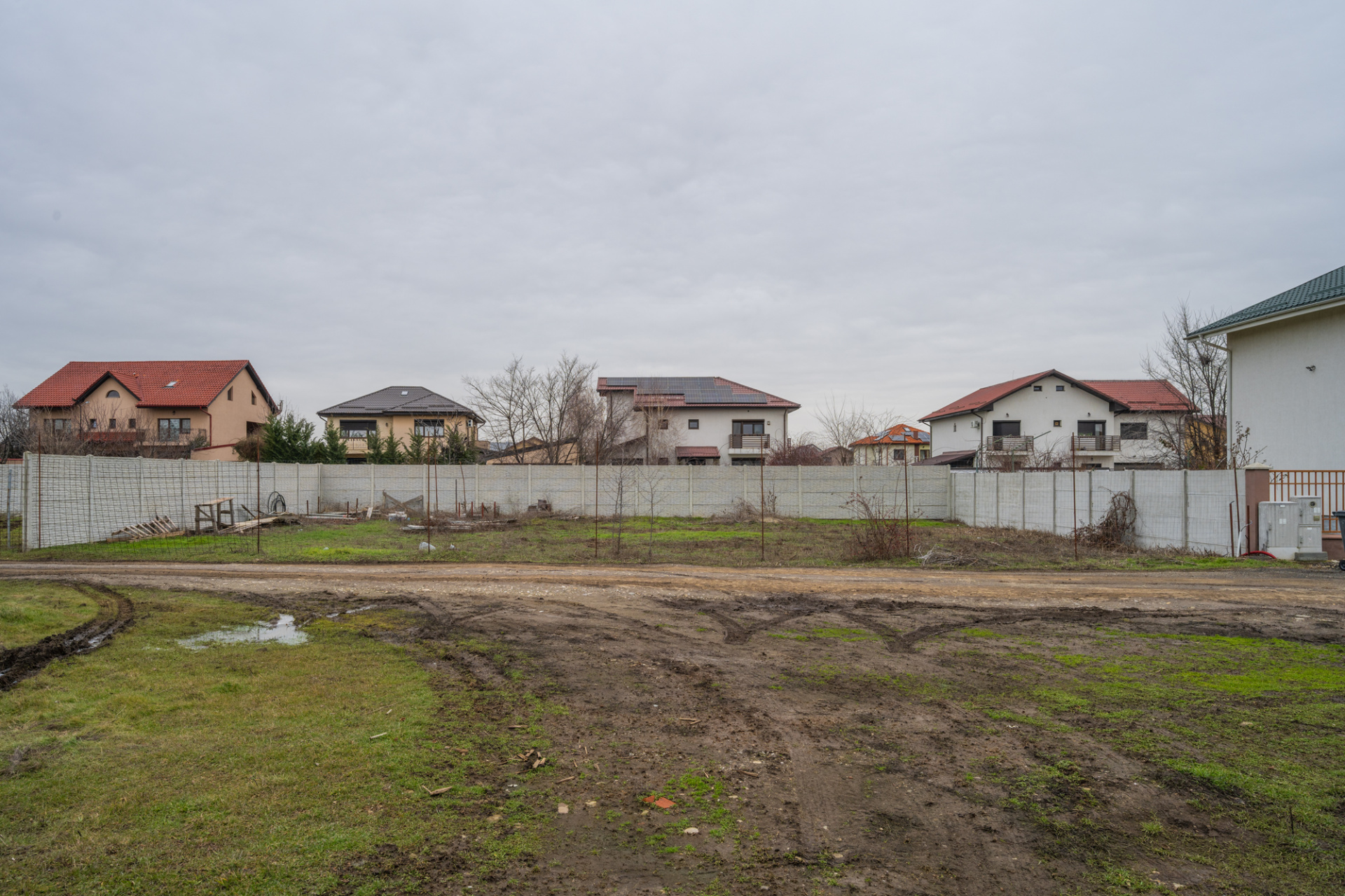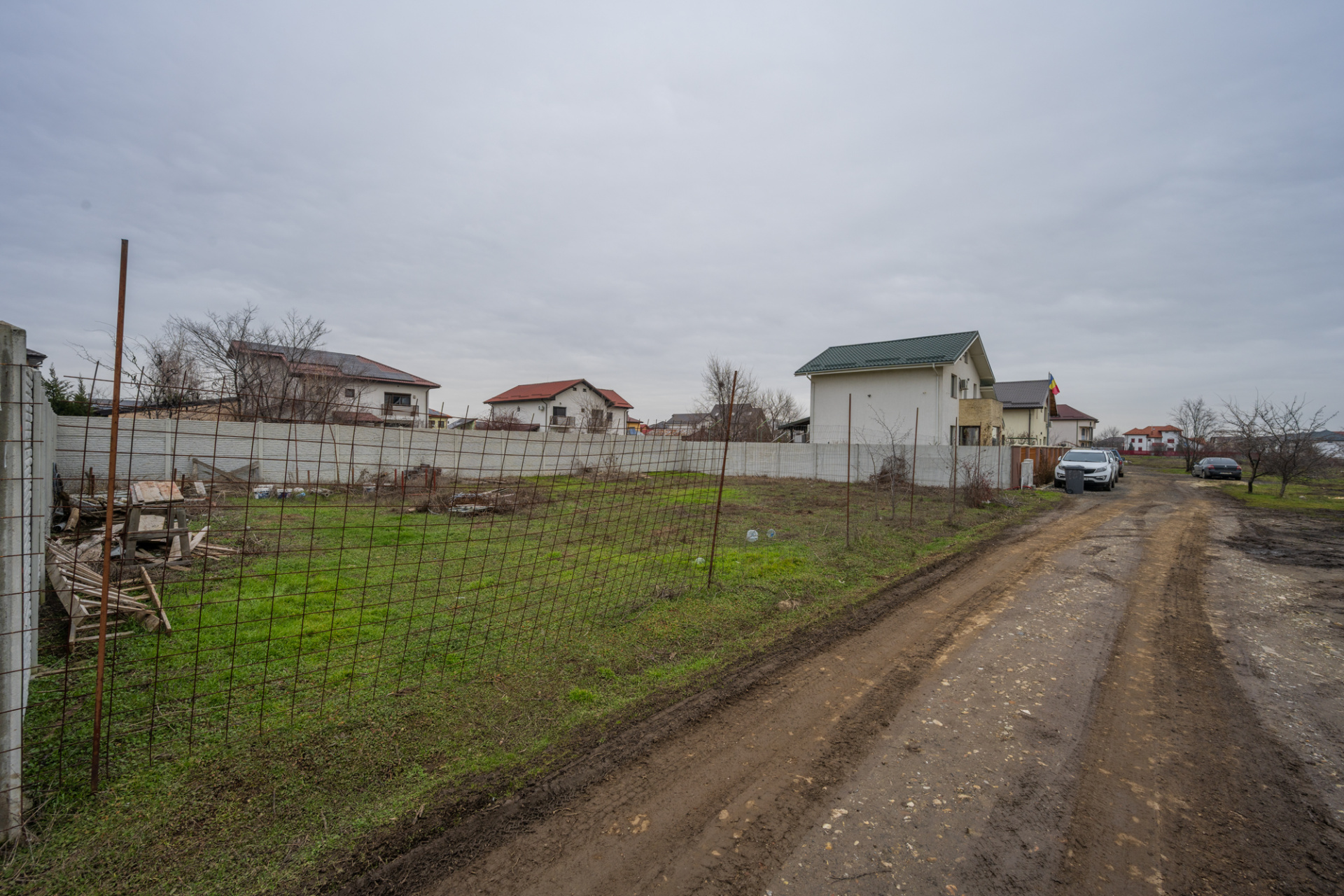 Terenul are o suprafata de 416,34 mp si o cota de 103,25 mp din drumul de acces. Deschidere la drumul de acces 24,38 m si adancime 17,08m. Teren intravilan situat pe strada privata cu vecinatati si utilitati. Terenul este ingradit cu gard de beton pe 3 laturi si vecin cu casa construita pe o latura. Gaze, electricitate, canalizare sunt pe drumul de servitute langa teren, iar apa curenta este la intrarea pe drumul de servitute.