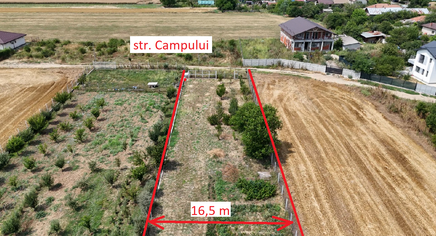 Va prezint la vanzare teren cu Suprafata de 5.000 mp, cu dubla deschidere de 16,5 ml, din strada Drumul Piscului nr.93 si strada Campului din comuna Ciolpani.